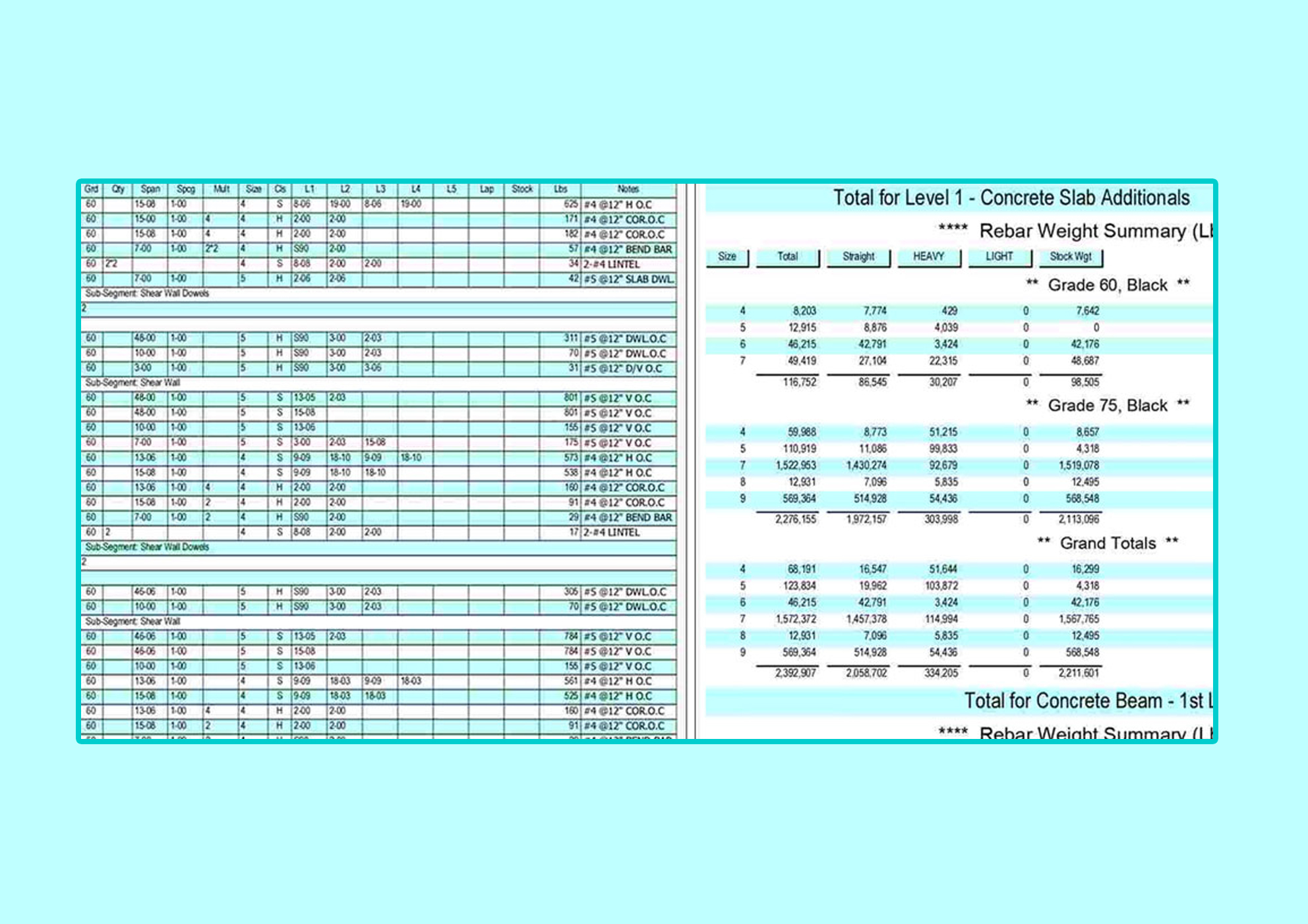 Arrow services provide detailed and most accurate Rebar Estimation in the industry. We have the ability to provide competitive pricing per ton. All reinforcing steel is estimated according to the standard guidelines as outlined by CRSI.